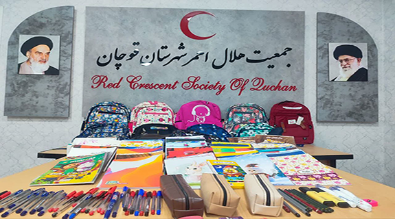 توزیع بسته های لوازم التحریر ویژه دانش آموزان کم برخوردار شهرستان در قالب طرح ارمغان مهر توسط اعضای داوطلبان جمعیت هلال احمر قوچان