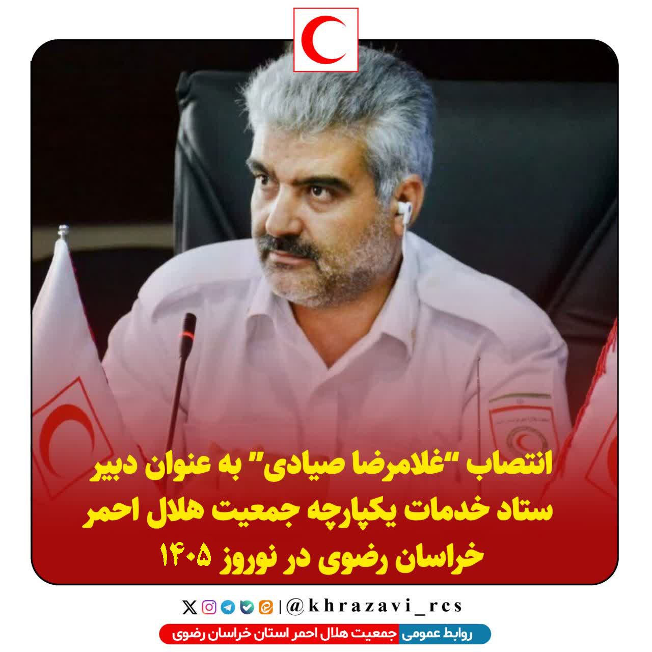 انتصاب “غلامرضا صیادی” به عنوان دبیر ستاد خدمات یکپارچه جمعیت هلال احمر خراسان رضوی در نوروز 1405