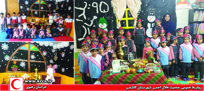 سفره شب یلدا در کانون غنچه های هلال مهد باران و صدف کاشمر برپا شد