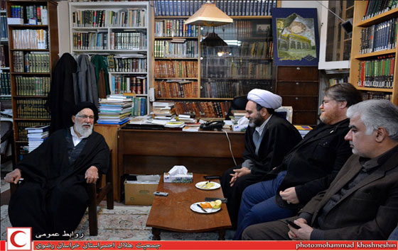 عکس خبری/دیدار مدیر عامل و مسئول دفتر نمایندگی ولی فقیه در جمعیت هلال احمرخراسان رضوی وجمعی از مدیران ومعاونین با آیت الله سیدان در دفتر معظم له