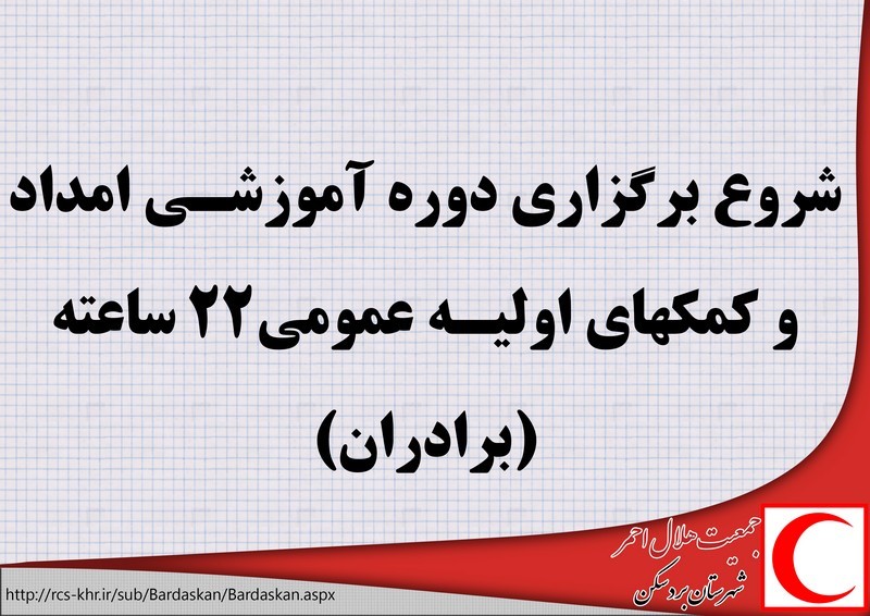 شروع برگزاری دوره آموزشـی امداد و کمکهای اولیـه عمومی22 ساعته (برادران)