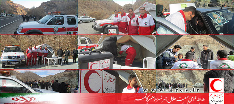 در سالروز رحلت حضرت رسول اکرم (ص) صورت گرفت : پوشش امدادی عزاداران پیاده کوهسرخ در مسیر امام زاده سید مرتضی (ع) کاشمر