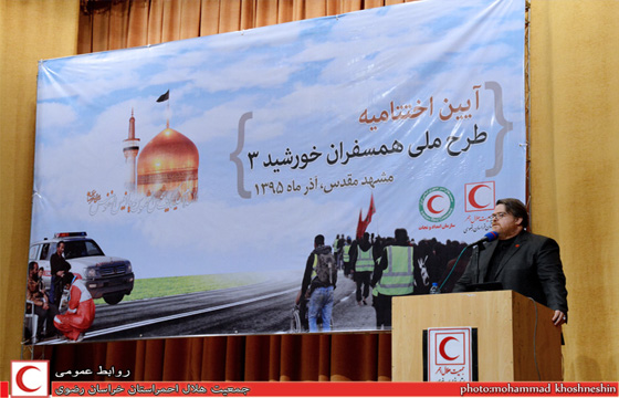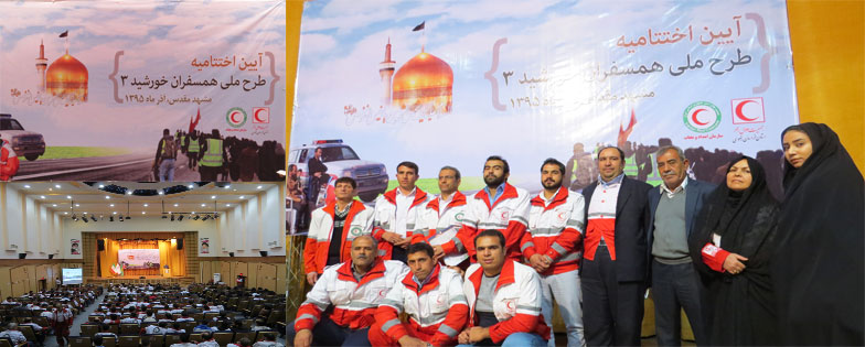 مراسم اختتامیه طرح همسفران خورشید3، با حضورمحمد حسن واحدی معاون هماهنگی امور زائران خراسان رضوی وسید خلیل منبتی معاون اماکن متبرکه آستان قدس رضوی ومدیر عامل هلال احمر استان ومسئولین ستادی و جمعی از امدادگران و نجاتگران روز پنجشنبه11 آذر 95 در سالن شهدای امدادگرمرکز علمی کاربردی جمعیت هلال احمر خراسان رضوی برگزار شد.