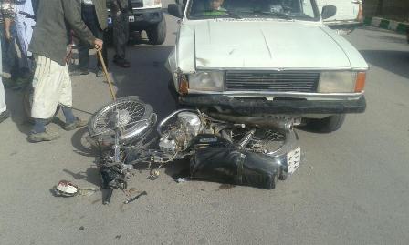 برخورد یک دستگاه موتور سیکلت با یک وانت پیکان موجب مصدومیت 2 نفر شد
