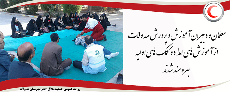 معلمان و دبیران آموزش و پرورش مه ولات ضمن آشنایی با جمعیت هلال احمر و اهداف عالیه ی آن از آموزش های امداد و کمک های اولیه بهره مند شدند .