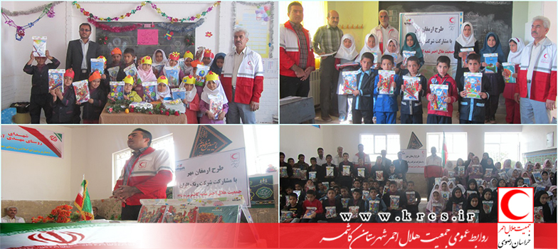 رییس جمعیت هلال احمر شعبه کاشمر خبر داد : طرح "ارمغان مهر" در مدارس ابتدایی روستاهای ایرج آباد و مهدی آباد شهرستان خلیل آباد اجرایی شد