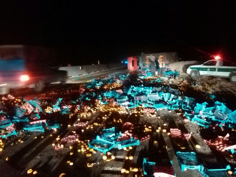 واژگونی کامیون و برخورد ان با دو خودرو پراید