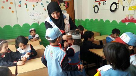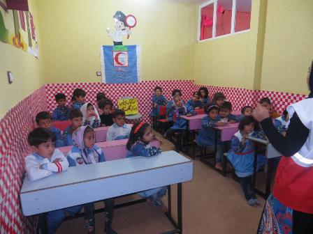 اعضای کانون غنچه های هلال احمر مهدکودک شاپرک نحوه پناهگیری در زمان زلزله را فرا گرفتند