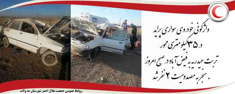 واژگونی خودروی سواری پراید در 35 کیلومتری محور تربت حیدریه به فیض آباد در صبح امروز منجر به مصدومیت 2 نفر شد .