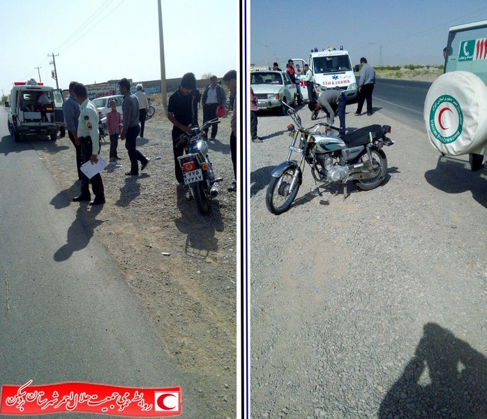 امدادرسانی نجاتگران پایگاه امداد جاده ای شهید موسوی بردسکن به برخورد دو موتور سیکلت