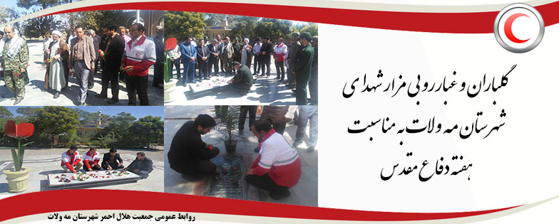 همزمان با دومین روز از هفته دفاع مقدس مزار شهدای شهرستان مه ولات با حضور خانواده های معظم شهدا و ایثارگران ، فرماندار، امام جمعه و مسئولین ادارات شهرستان و امدادگران و نجاتگران هلال احمر مه ولات گلباران و غبارروبی شد.