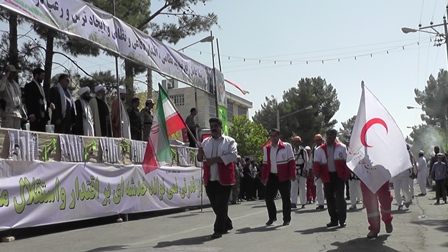 تیم های امداد و نجات جمعیت هلال احمر خواف در مراسم رژه هفته دفاع مقدس شرکت نمودند