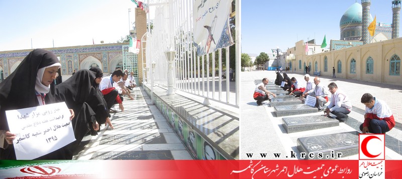گلزار شهدای سرخس به مناسبت هفته دفاع مقدس غبارروبی شد