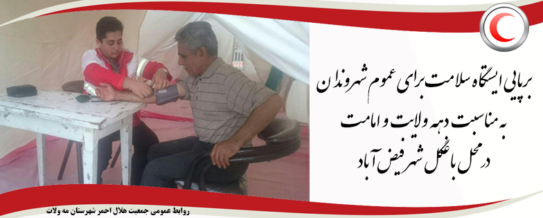 به مناسبت دهه امامت و ولایت ، ایستگاه سلامت در راستای ارائه خدمات به عموم شهروندان در محل باغگل شهر فیض آباد برپا شد.