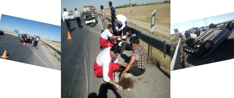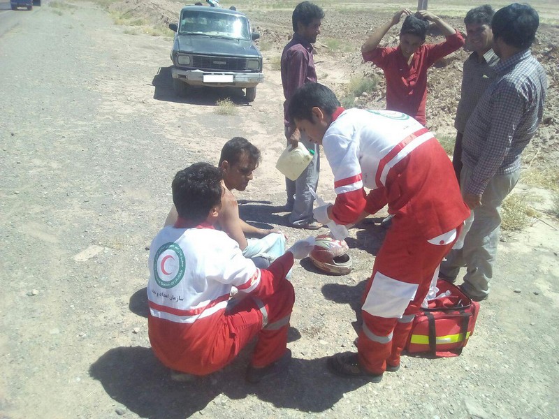 امداد رسانی تیم امداد و نجات هلال احمر پایگاه شهید رسولی رشتخوار به واژگونی یک دستگاه موتور سیکلت