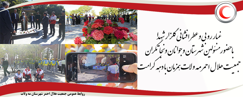 جمعی از مسئولان شهرستان ، نجاتگران و جوانان جمعیت هلال احمر با حضور در گلزار شهدای مه ولات با نثار فاتحه و اهدای گل و غبارروبی و عطرافشانی گلزار شهدا با آرمان های امام راحل و دستاوردهای انقلاب اسلامی تجدید میثاق نمودند