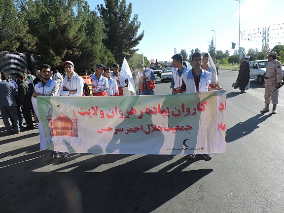 جوانان جمعیت جوانان هلال احمرسرخس ،زائر پیاده حرم رضوی شدند: