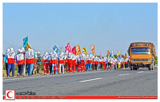 25نفر از جوانان عضو جمعیت هلال احمر سرخس از امروز مسیر جاده سرخس به مشهد رامی پیمایند