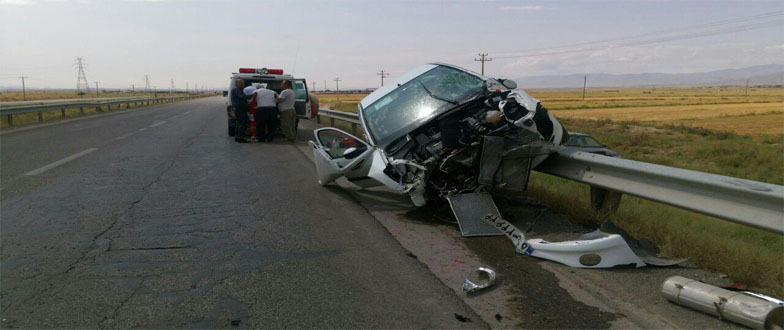 برخورد خودرو 206 با گاردریل محور قوچان فاروج