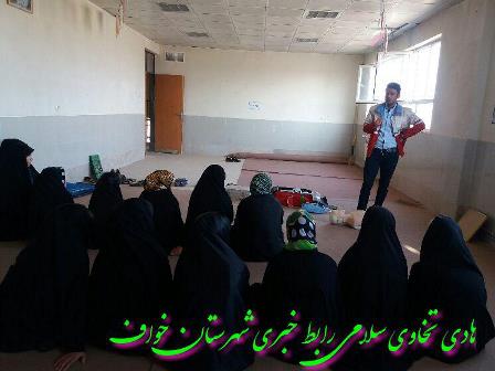 با حضور مربیان جمعیت هلال احمر خواف در روستای زوزن تمرینات تیم های دادرس برای شرکت در مرحله استانی مسابقات شروع شد