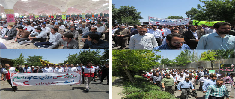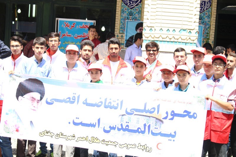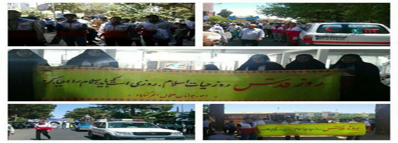 همزمان با آخرين جمعه از ماه مبارك رمضان و به مناسبت روز جهاني قدس پرسنل ,اعضای جمعيت هلال احمر گناباد همراه با مردم روزه دار در مراسم راهپيمايي روز قدس شركت نمودند. سید مسعود هدایتی از پوشش امدادی این مراسم توسط نجاتگران جمعیت هلال احمر