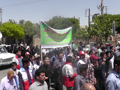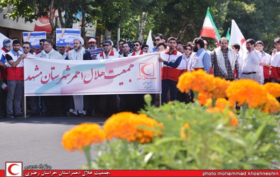 اعضا و داوطلبان هلال احمر خواف همگام با هموطنان غیور ایران اسلامی در روز جهانی قدس