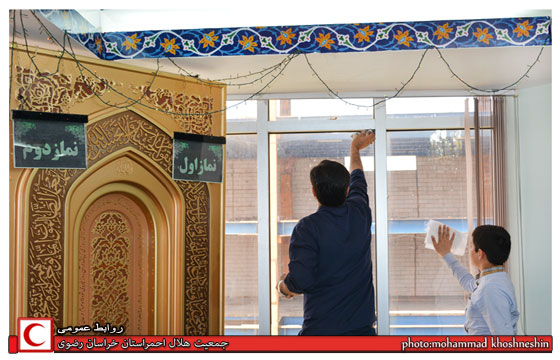 اجرای طرح غبار روبی مساجد به مناسبت دهه تکریم مساجد توسط داوطلبان و جوانان هلال احمر شهرستان رشتخوار