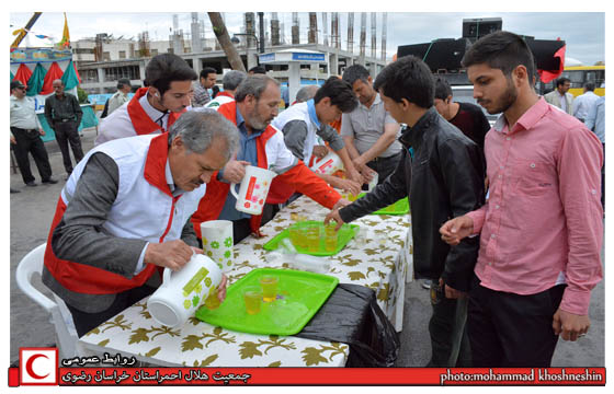 گزارش تصویری /راه اندازی ایستگاه صلواتی اکیپ امدادی جمعیت هلال احمر استان خراسان رضوی در اجتماع عظیم منتظران ظهور در مشهد