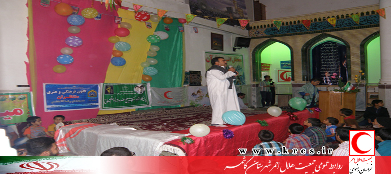 به گزارش روابط عمومي جمعيت هلال احمر شهرستان سرخس علاوه بر اجرای خدمات امدادی، راهنمایی های گردشگری و موقعیت های جغرافیایی و برپایی چادرهای سلامت به منظور سنجش رایگان فشار و قندخون مسافران، ، خيمه هايي.با عنوان دوستدار کودک تجهیزشده که دراین فضا کودکان مراجعه کننده از طریق نقاشی و سایر هنرهای تجسمی با مفاهیم جمعیت هلال احمر و اصول هفتگانه آن آشنا می شوند. به دليل حضور چشم گير كودكان و خانواده ها سعی شده در قالب های متناسب با سنین کودکان مراجعه کنند