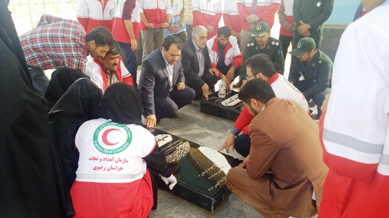 در آخرین پنج شنبه هفته هلال احمر اعضا و پرسنل این اداره به گلزار شهدای شهرستان تایباد رفته و ضمن عطر افشانی ، با این عزیزان تجدید بیعت نمودند