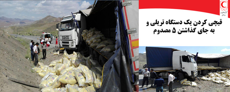 قیچی کردن یک دستگاه تریلی ،پنج مصدوم بر جای گذاشت