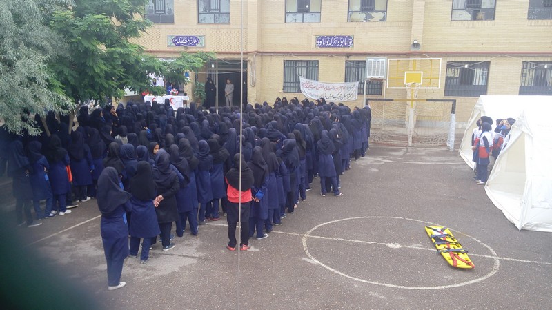 همزمان با پنجمین روز هفته هلال احمر و با شعار ایثار برای کاهش آلام بشری مانور تخلیه اضطراری واسکان در مدرسه حضرت زینب (س ) برگزار شد .