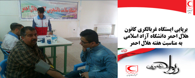 برپایی ایستگاه غربالگری کانون هلال احمر دانشگاه آزاد به مناسبت هفته هلال