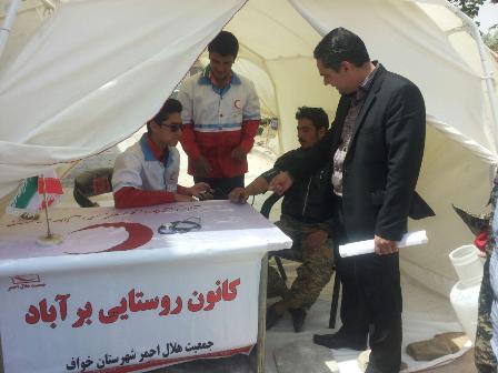 برپایی ایستگاه سلامت توسط اعضای کانون روستایی برآباد خواف در حاشیه نمایشگاه اقتصاد مقاومتی