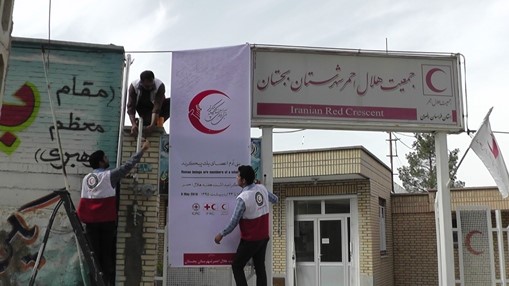 تزئین ونصب بنربه منابست گرامیداشت هفته هلال احمرشهرستان بجستان