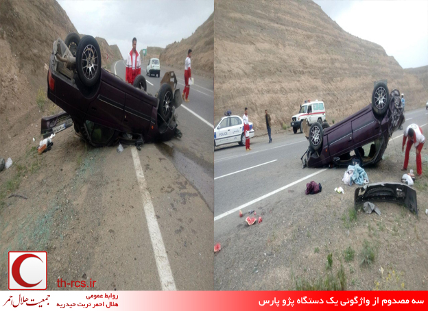 حادثه واژگونی خودروی پژو پارس در کیلومتر55 محور تربت حیدریه به مشهد سه مصدوم برجای گذاشت.