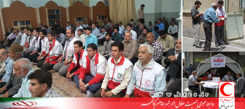 امدادگران جمعیت هلال احمر خواف در مصلی نماز جمعه شهرستان ایستگاه سلامت برپا نمودند