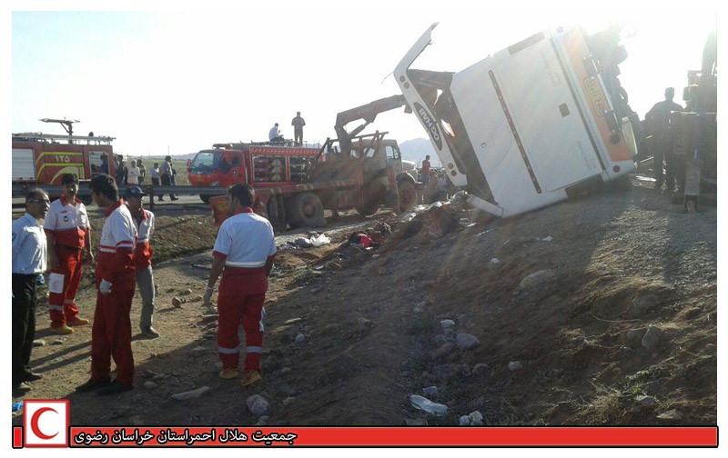 واژگوني اتوبوس در تربت حيدريه دو كشته و 43 مصدوم برجاي گذاشت