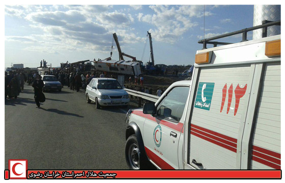گزارش تصویری/حادثه واژگونی اتوبوس شهرکرد.کیلومتر 5محورتربت حیدریه به زاوه