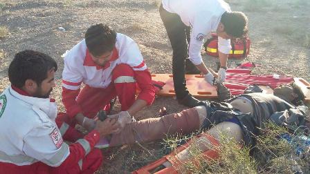 نجاتگران پایگاه امداد و نجات جاده ای سه راهی نشتیفان با همکاری اورژانس مصدومان حادثه واژگونی پیکان را به بیمارستان انتقال دادند