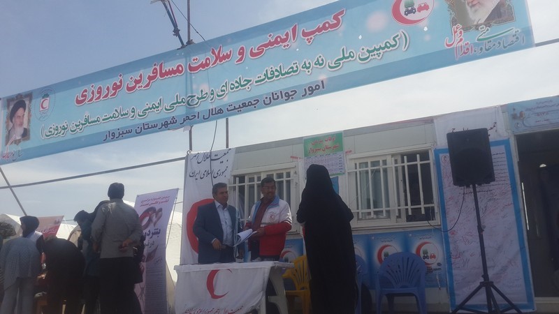 بازدید معاون جوانان جمعیت هلال احمر خراسان رضوی از ایستگاه ایمنی سلامت نوروزی وکمپ نه به تصادفات جاده ای سبزوار