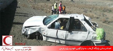 امداد رسانی امدادگران پایگاه گرماب به واژگونی خودرو پژو پارس