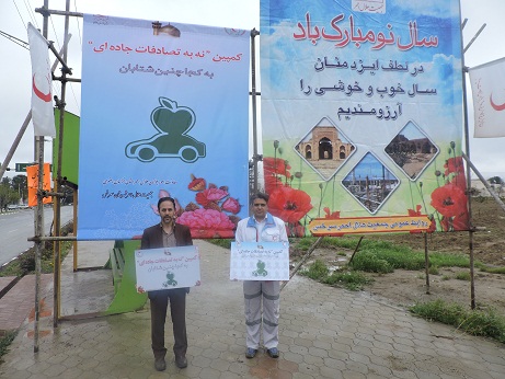 در آخرین روز های سال 94 در مورخه 28/12/94 آقای رفیعی کارشناس معاونت جوانان به همراه آقای اعلایی از چادرهای طرح ایمنی و سلامت مسافرین نوروزی پست شهید صیاد شیرازی مستقر در پلیس راه بازدید نموده و ضمن تشکر از چیدمان چادر ها و برپایی نمایشگاه فعالیتهای سازمان جوانان و امداد از چیدمان سفره هفت سین ، خیمه نماز و راهنمایی های شایسته راهنمایان جوان تقدیر نموده و آرزوی سالی خوش توام با موفقیت و بهروزی را برایشان از خداوند منان خواستار شد.