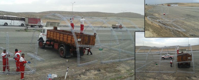 آماده سازی کمپ امدادی جهت ارائه خدمات به زائرین و مسافرین مشهد مقدس در طرح نوروزی 95 توسط جمعیت هلال احمر مشهد