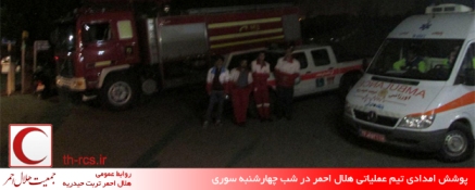 به گزارش روابط عمومی جمعیت هلال احمر شهرستان تربت حیدریه تیم عملیاتی جمعیت هلال احمر شهرستان تربت حیدریه به همراه اورژانس ، نیروی انتظامی ، راهنمایی رانندگی ، آتش نشانی پوشش امدادی شب چهارشنبه سوری را بر عهده داشت.