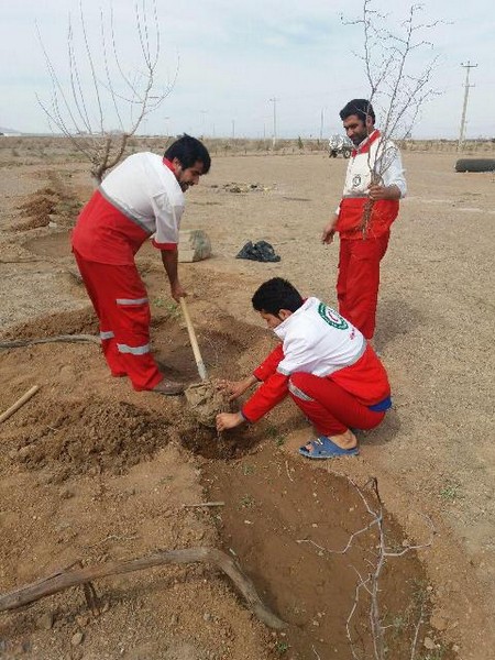 طرح کاشت درخت مثمر در پایگاه امداد و نجات بین جاده ای هلال احمر