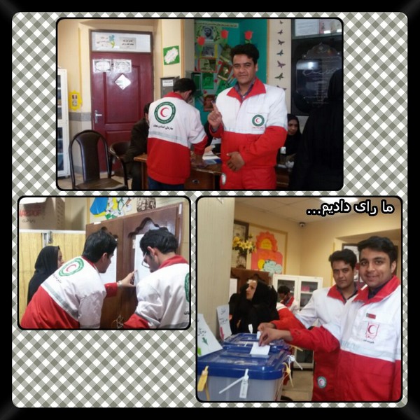 نجاتگران و امدادگران جمعیت هلال احمر شهرستان نیشابور روز جمعه 7 اسفند 94 در دهمین دوره انتخابات حضور داشتند.