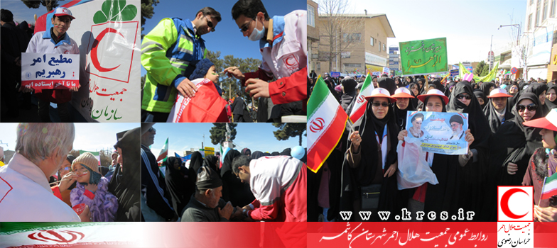 حضور پرشور اعضای داوطلب جمعیت هلال احمر بردسکن در مراسم راهپیمایی 22 بهمن