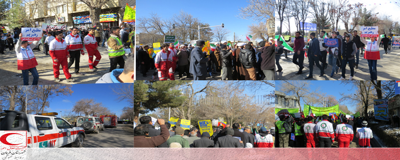 حضور پرشور كاركنان , امدادگران , داوطلبان و جوانان شعبه گناباد در راهپيمايي يوم الله 22 بهمن