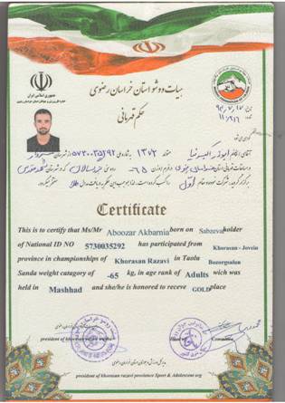 عضو فعال جوانان جمعیت هلال احمر شهرستان جوین قهرمان استانی وشو شد